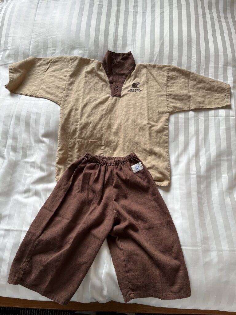 また、子供用の館内着はこんな感じで、ワンサイズ展開となっているようです。(小学生低学年向きの100cm~130cmサイズ)